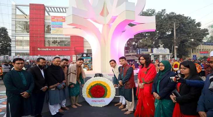 নীলফামারীতে বীর শহিদদের প্রতি শ্রদ্ধায় পুষ্পমাল্য অর্পণ